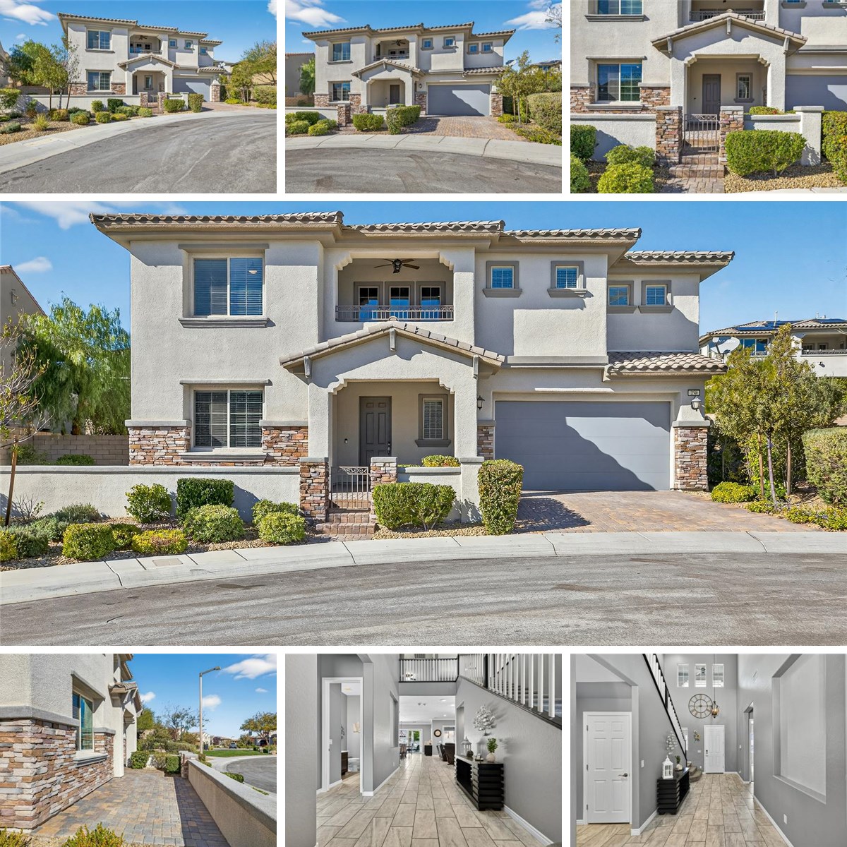 Amazing Cul D Sac Lot for your kids. The interior sidewalk adjacent to the home takes you right into Fox Hill Park and right to Vasiliadis Elementary School. This home boasts 3302 sq ft, 4 bedrooms, 1 loft, 1 den, and a full chefs kitchen. Each space is designed with luxury, and amenities. The kitchen features 2 built in ovens, a gas stove top, break area, pantry, island, and commercial refrigerator. All looking into a scenic view of the backyard. Great ensuite guest bedroom downstairs. Upstairs has 3 bedrooms, a loft, a den, plus a spacious and modern primary suite. The ensuite features a separate shower and soaking tub with double sinks and makeup table. The balcony is a perfect place to enjoy a view of the strip and sky. Outside is the serene oasis. Pool and spa combo with quiet overflow waterfall for the hot days. Covered patio has a fireplace and easy relaxing area. There is also a firepit and grass area to use at leisure. You don’t want to miss this one!